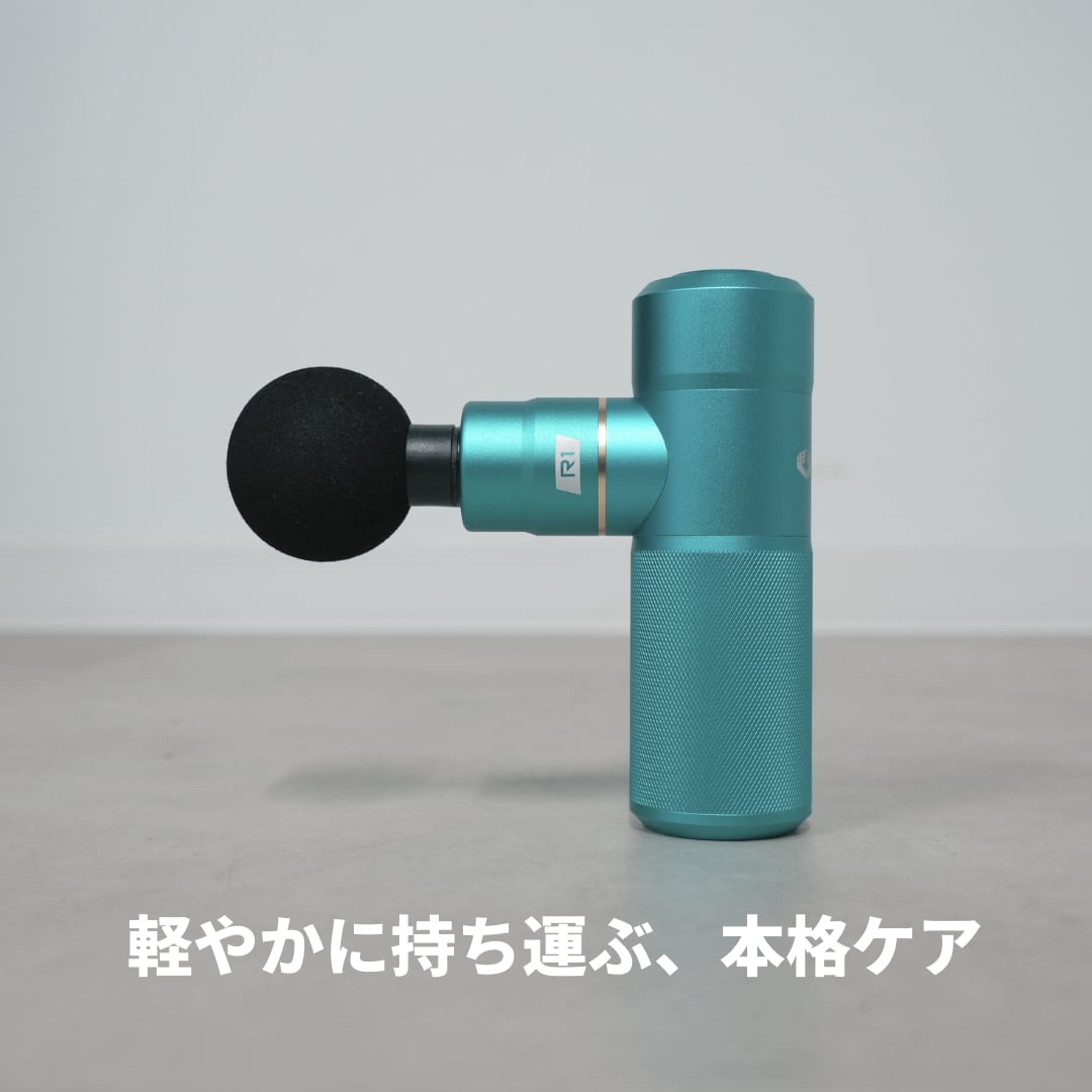 コンパクトなボディに凝縮された本格的なマッサージ機能。7mmストローク×13kgの圧迫振動で、効果的な筋肉ケアを実現します。エアクラフトグレードのアルミニウムを採用し、耐久性と軽量性を両立。最大7時間持続するバッテリーと4種類のアタッチメントで、場所を選ばず全身のケアが可能です。